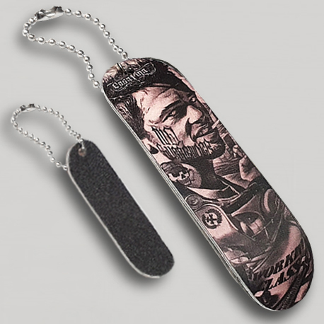 Llavero Skate con diseño exclusivo del tatuaje de Brad Pitt del Artista Carlos Fabra.